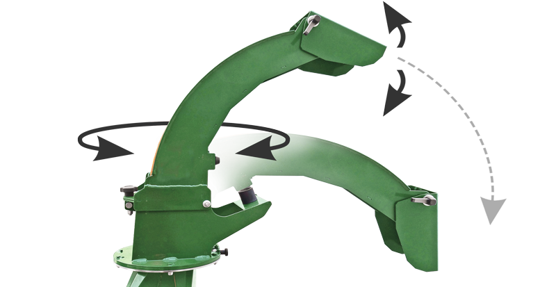 Faltbares, drehbares Auswurfrohr mit Einstellung der Wurfweite
