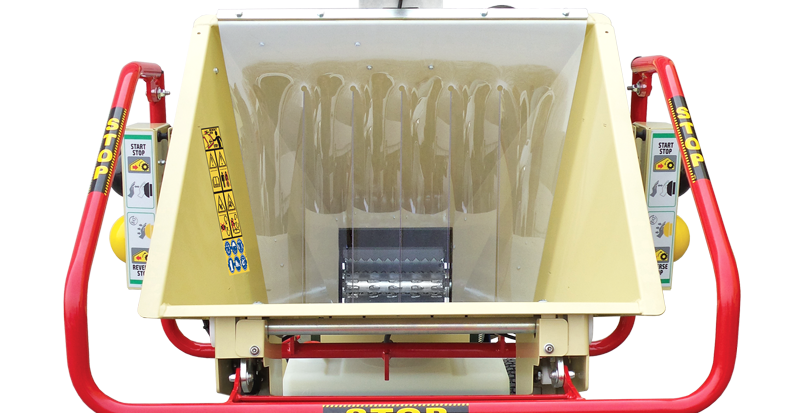 Gewährleistet die Sicherheit des Bedieners, indem der zufällige Auswurf von Hackgut in seine Richtung verhindert wird.