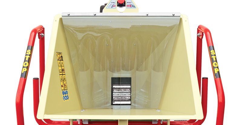 Gewährleistet die Sicherheit des Bedieners, indem der zufällige Auswurf von Hackgut in seine Richtung verhindert wird.